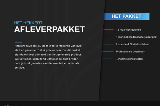 Deze auto wordt inclusief afleverpakket aangeboden en geleverd. Het afleverpakket bestaat uit: - Onderhoudsbeurt volgens serviceboekje - 24 maanden garantie - 1 jaar mobiliteitsservice Europa - Minimaal 1 jaar APK - Volle Tank en of Accu - Professionele poetsbeurt - Tenaamstellingskosten - Kwaliteitscontrole op 100 punten